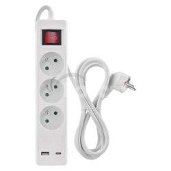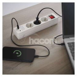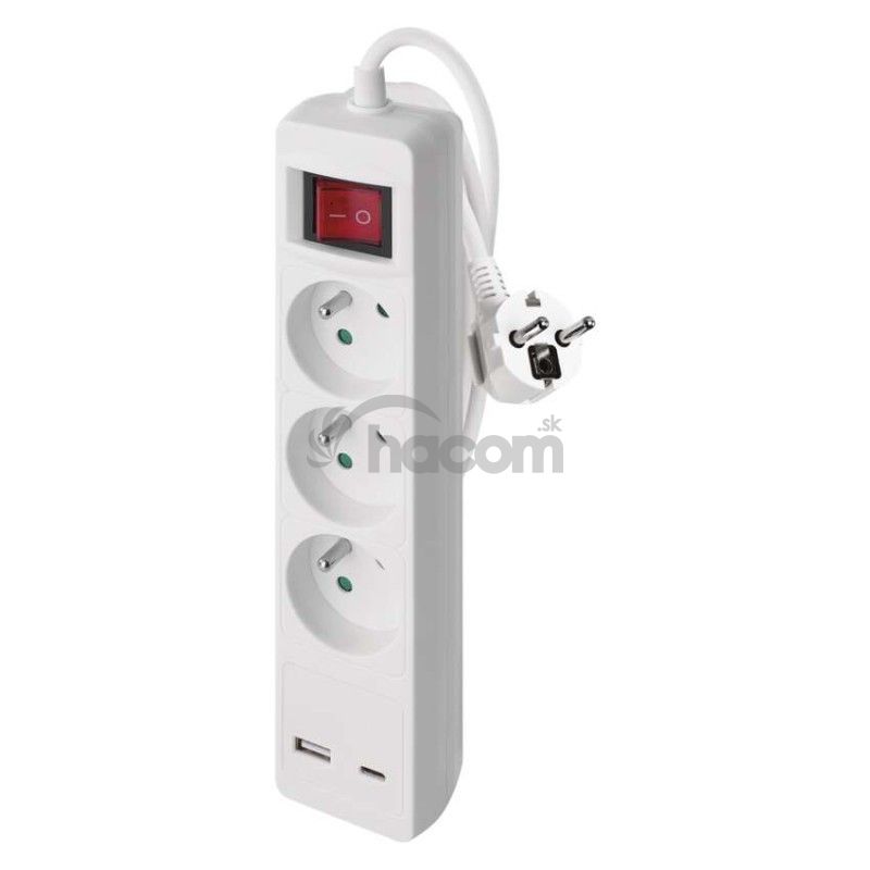 - Predlžovací kábel 2 m / 3 zásuvky / s vypínačom / biely / 1×USB-A + 1×USB-C / 1,5 mm2 P1312CU