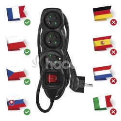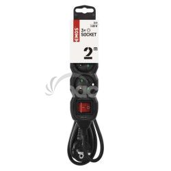 - Predlžovací kábel 2 m / 3 zásuvky / s vypínačom / čierny / PVC / 1 mm2 PC1312