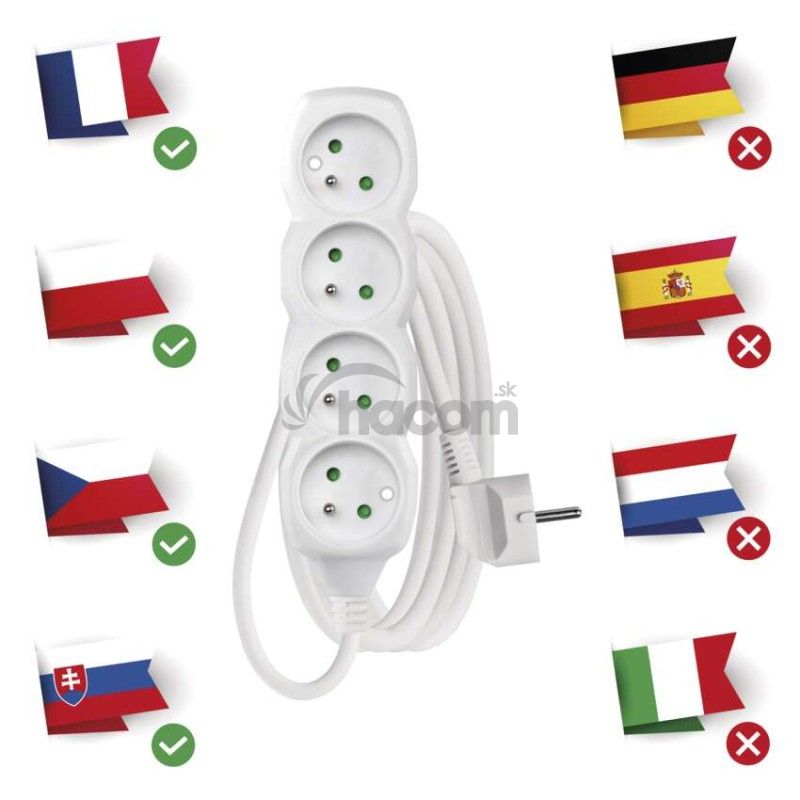- Predlžovací kábel 2 m / 4 zásuvky / biely / PVC / 1 mm2 P0412