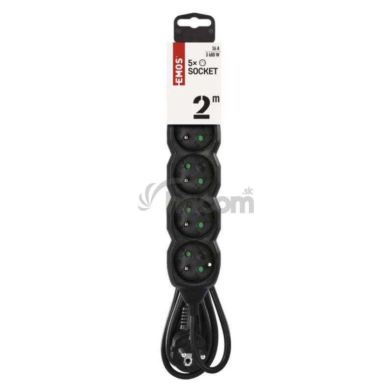 - Predlžovací kábel 2 m / 5 zásuviek / čierny / PVC / 1 mm2 PC0512