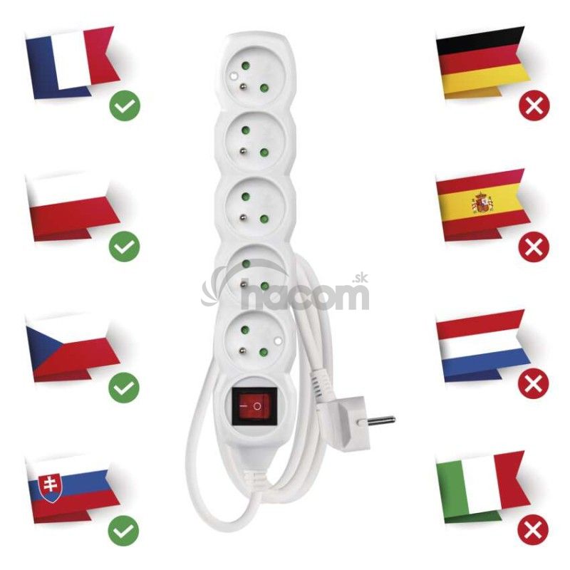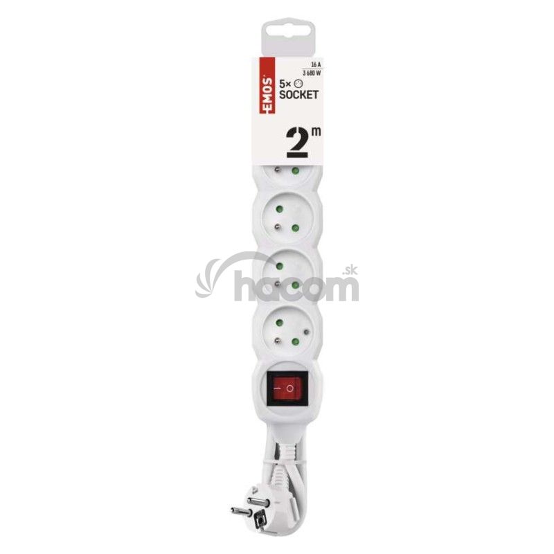 - Predlžovací kábel 2 m / 5 zásuviek / s vypínačom / biely / PVC / 1 mm2 P1512