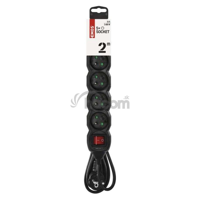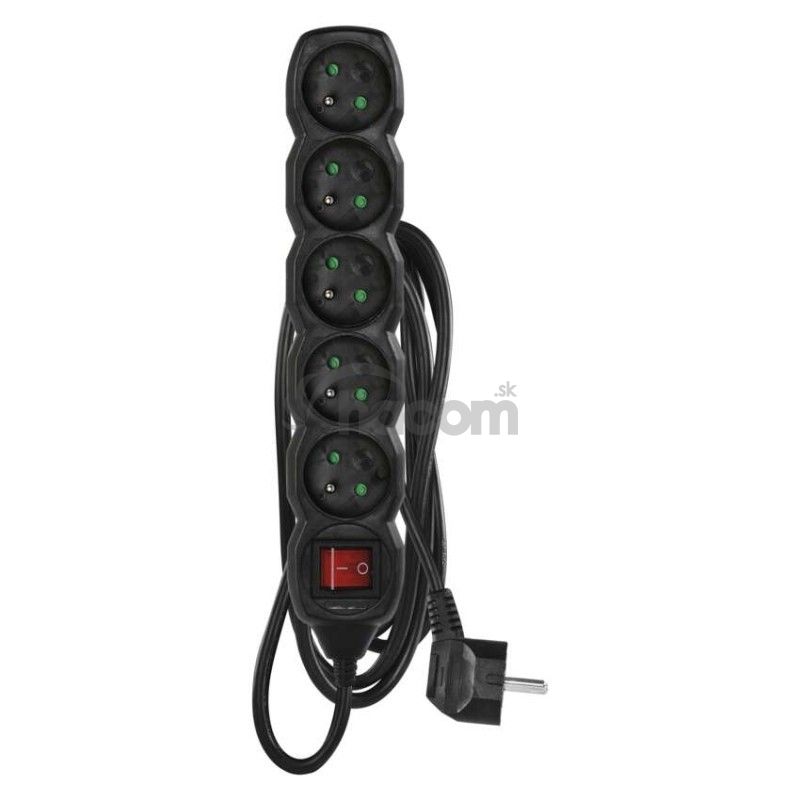 - Predlžovací kábel 2 m / 5 zásuviek / s vypínačom / čierny / PVC / 1 mm2 PC1512