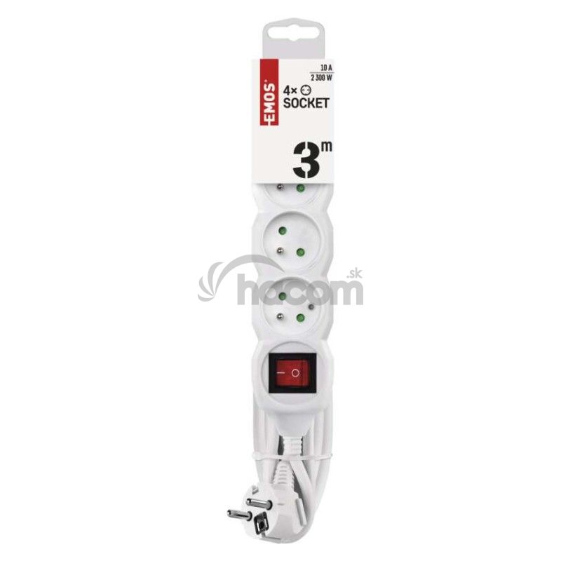 - Predlžovací kábel 3 m / 4 zásuvky / s vypínačom / biely / PVC / 1 mm2 P1413