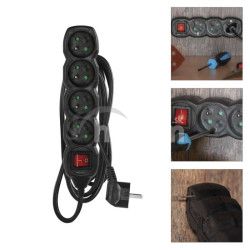- Predlžovací kábel 3 m / 4 zásuvky / s vypínačom / čierny / PVC / 1 mm2 PC1413