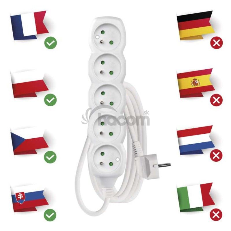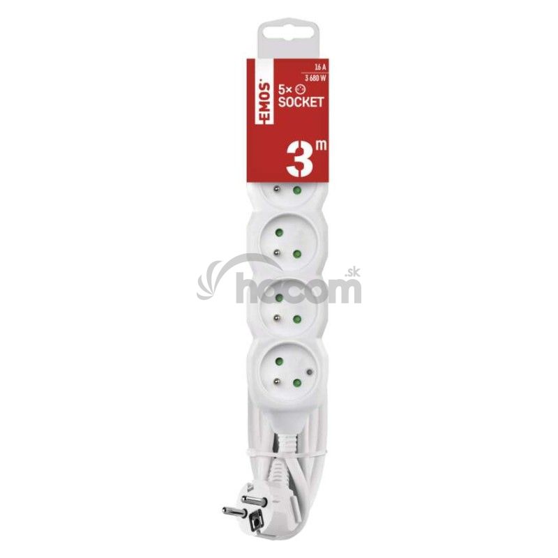 - Predlžovací kábel 3 m / 5 zásuviek / biely / PVC / 1,5 mm2 P0513R