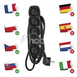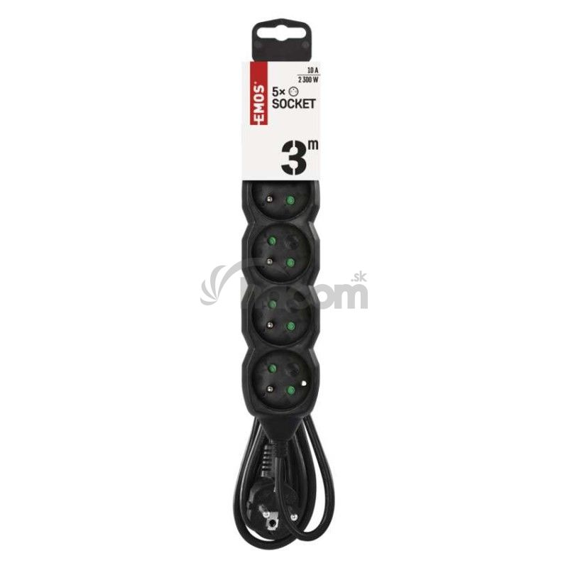 - Predlžovací kábel 3 m / 5 zásuviek / čierny / PVC / 1 mm2 PC0513