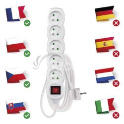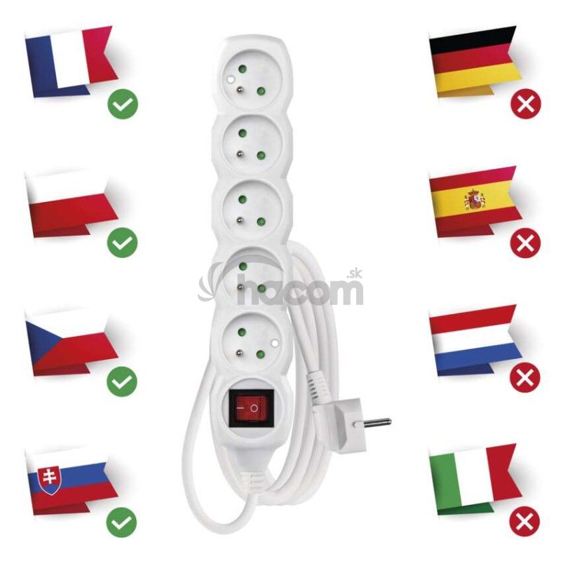 - Predlžovací kábel 3 m / 5 zásuviek / s vypínačom / biely / PVC / 1,5 mm2 P1513R