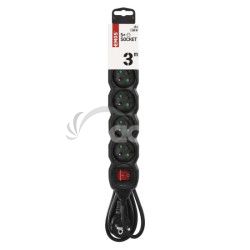 - Predlžovací kábel 3 m / 5 zásuviek / s vypínačom / čierny / PVC / 1 mm2 PC1513