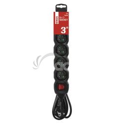 Predlžovací kábel 3 m / 5 zásuviek / s vypínačom / čierny / PVC / 1,5 mm2 PC1513R