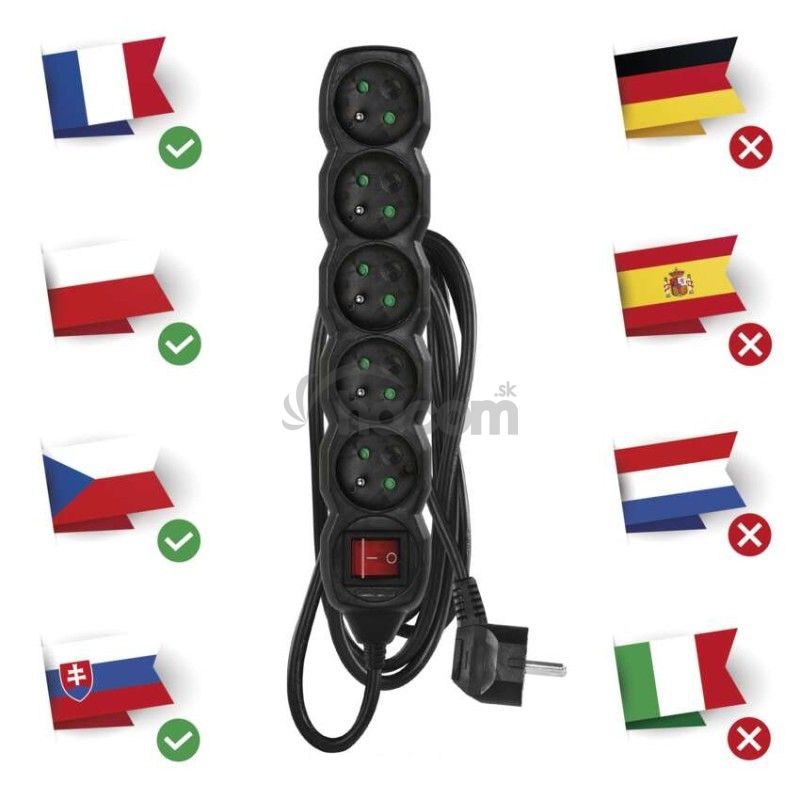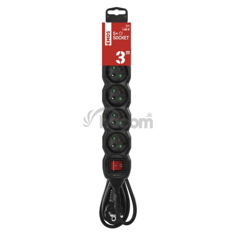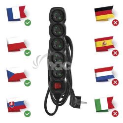 - Predlžovací kábel 3 m / 5 zásuviek / s vypínačom / čierny / PVC / 1,5 mm2 PC1513R