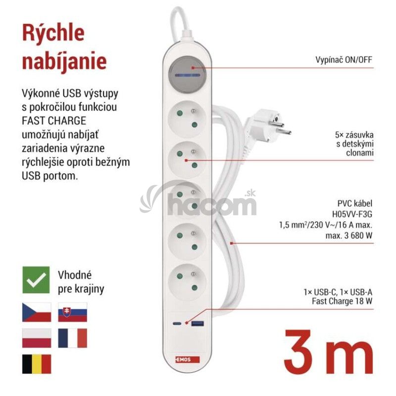 | materiál zásuvky a vidlice | PC (polykarbonát) |
