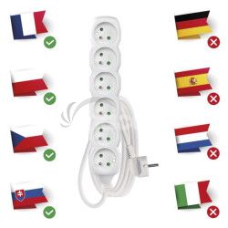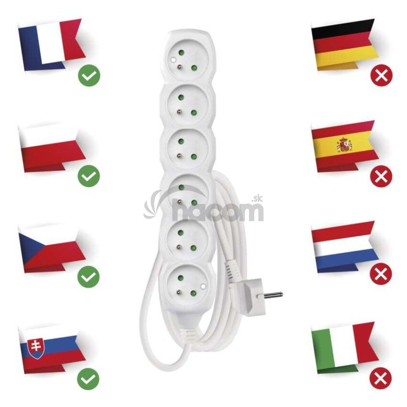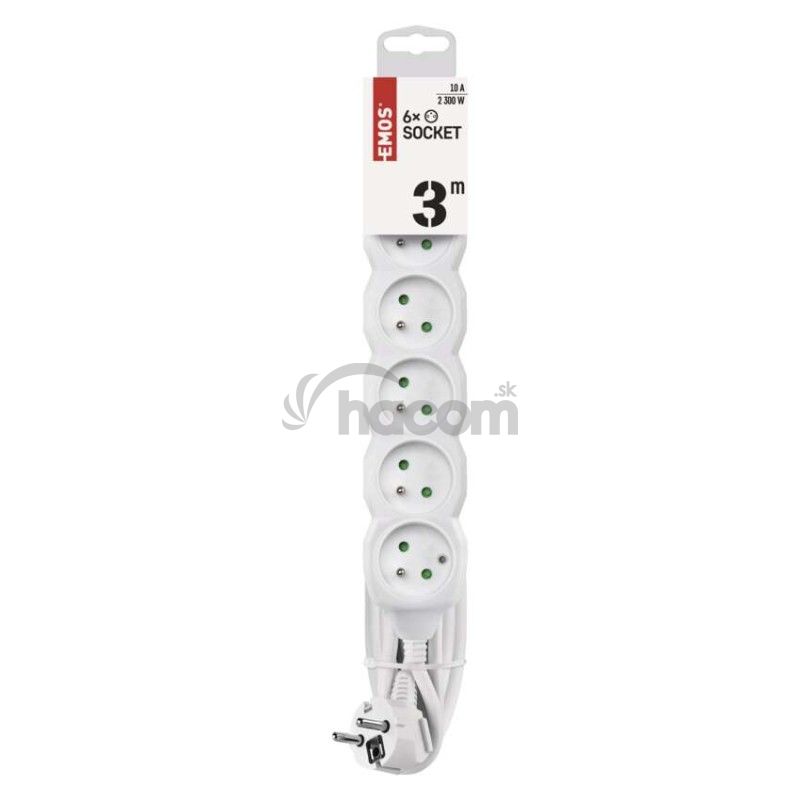 - Predlžovací kábel 3 m / 6 zásuviek / biely / PVC / 1 mm2 P0613