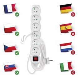 - Predlžovací kábel 3 m / 6 zásuviek / s vypínačom / biely / PVC / 1,5 mm2 P1613R