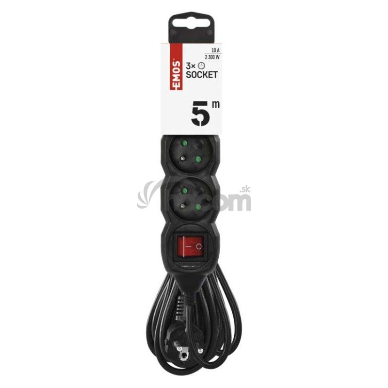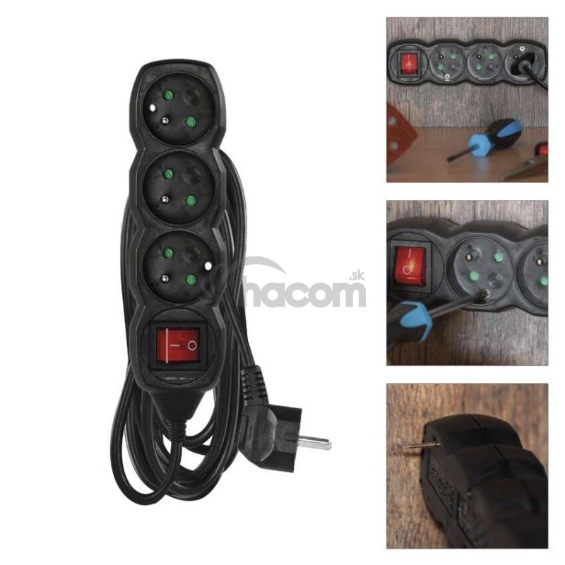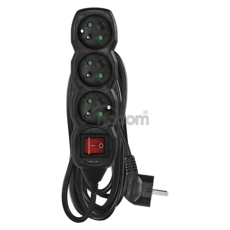 - Predlžovací kábel 5 m / 3 zásuvky / s vypínačom / čierny / PVC / 1 mm2 PC1315