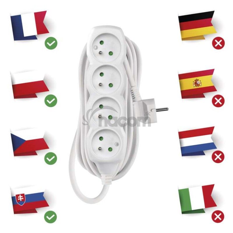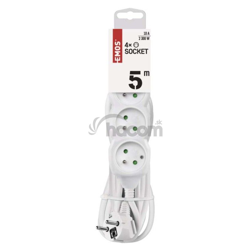 - Predlžovací kábel 5 m / 4 zásuvky / biely / PVC / 1 mm2 P0415