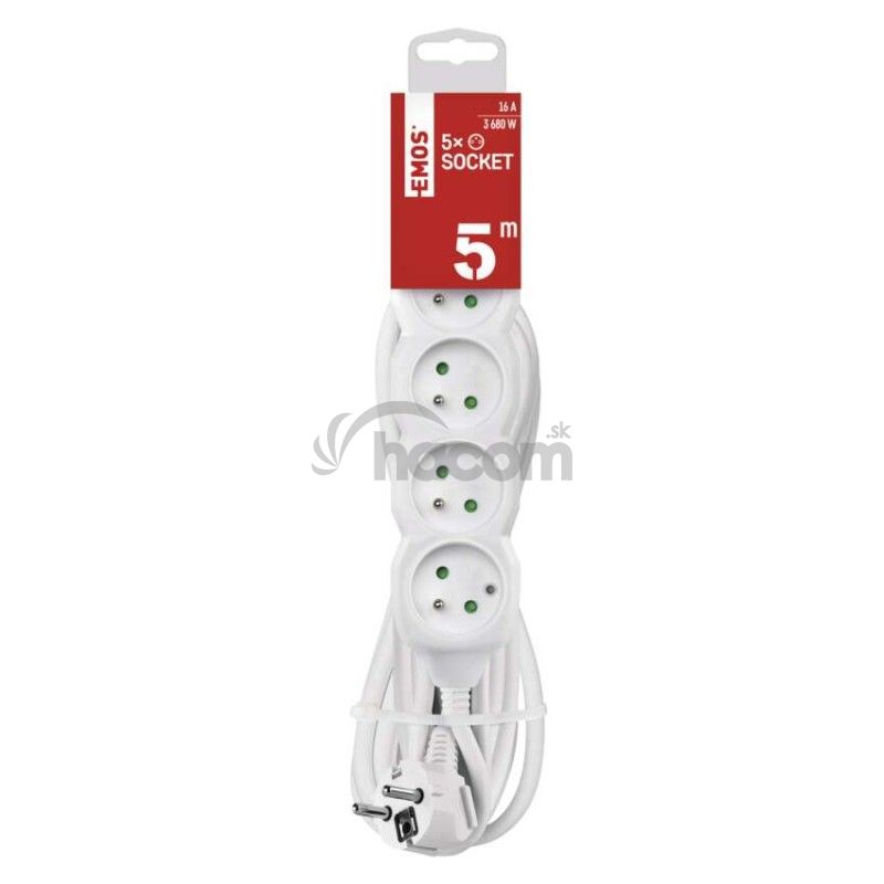 - Predlžovací kábel 5 m / 5 zásuviek / biely / PVC / 1,5 mm2 P0515R