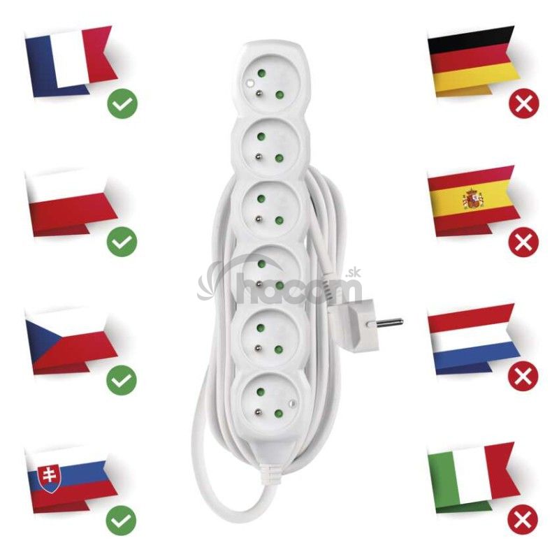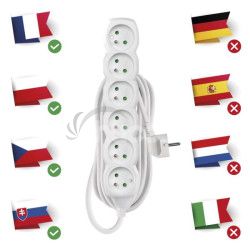 - Predlžovací kábel 5 m / 6 zásuviek / biely / PVC / 1,5 mm2 P0615R
