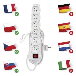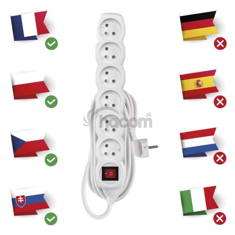 - Predlžovací kábel 5 m / 6 zásuviek / s vypínačom / biely / PVC / 1 mm2 P1615