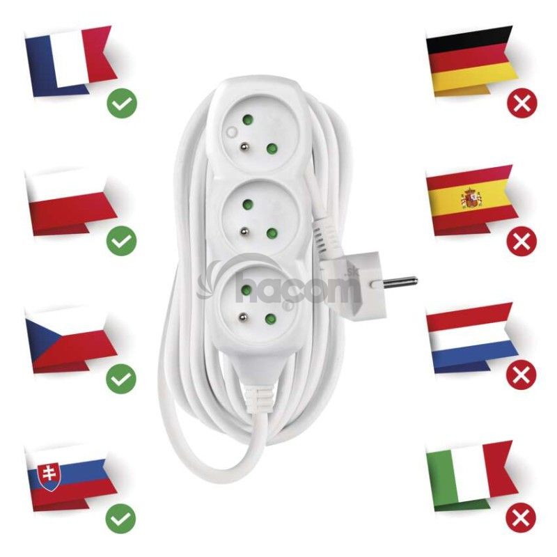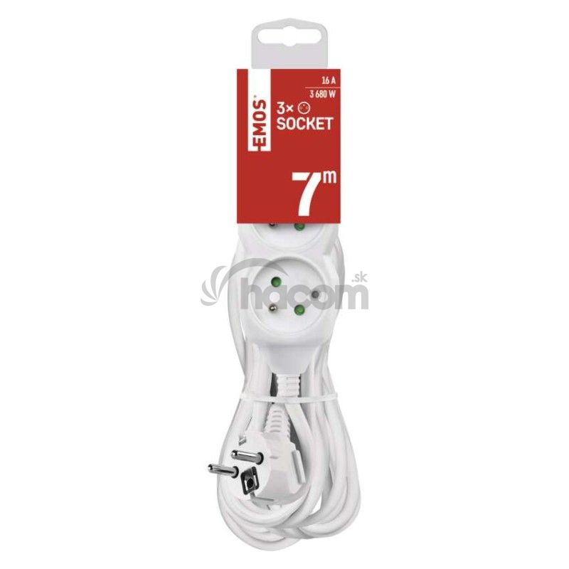 - Predlžovací kábel 7 m / 3 zásuvky / biely / PVC / 1,5 mm2 P0317R