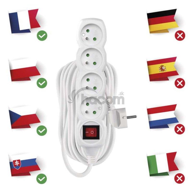 - Predlžovací kábel 7 m / 4 zásuvky / s vypínačom / biely / PVC / 1,5 mm2 P1417R