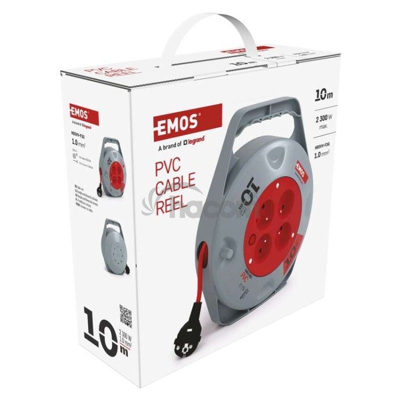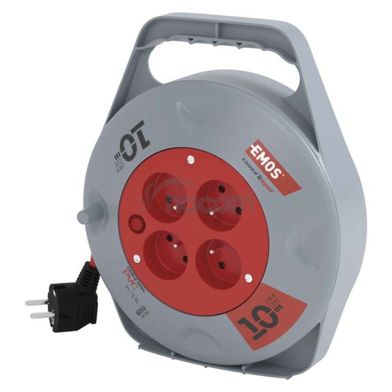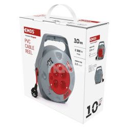 - Predlžovací kábel na bubne 10 m / 4 zásuvky / červený / PVC / 230 V / 1 mm2 P19410N