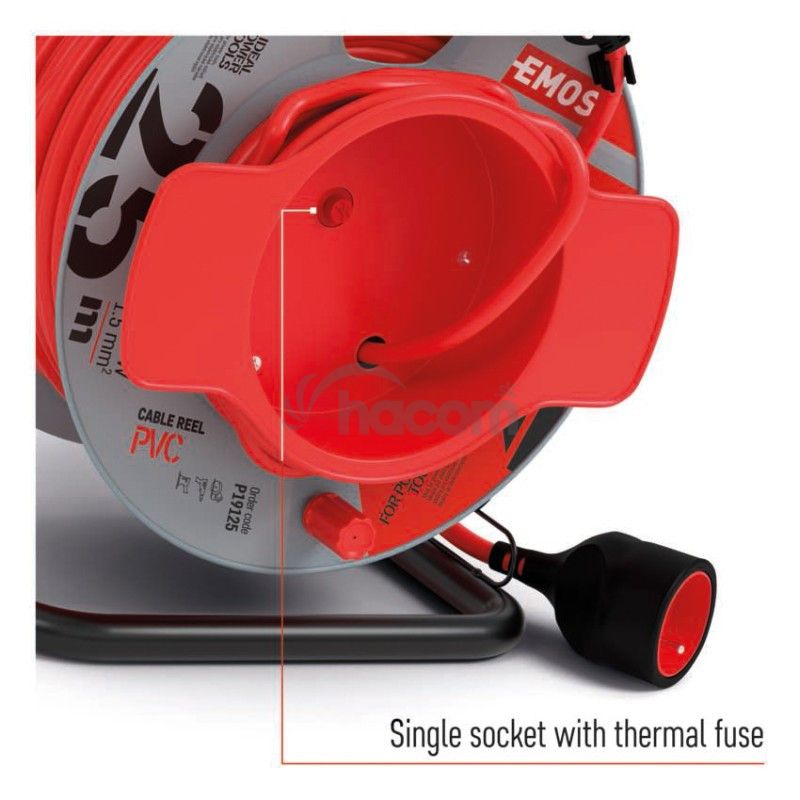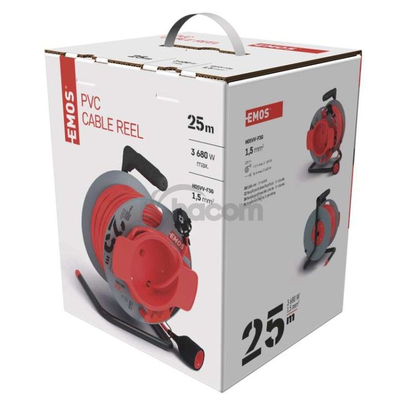 - Predlžovací kábel na bubne 25 m / 1 zásuvka / červený / PVC / 230 V / 1,5 mm2 P19125