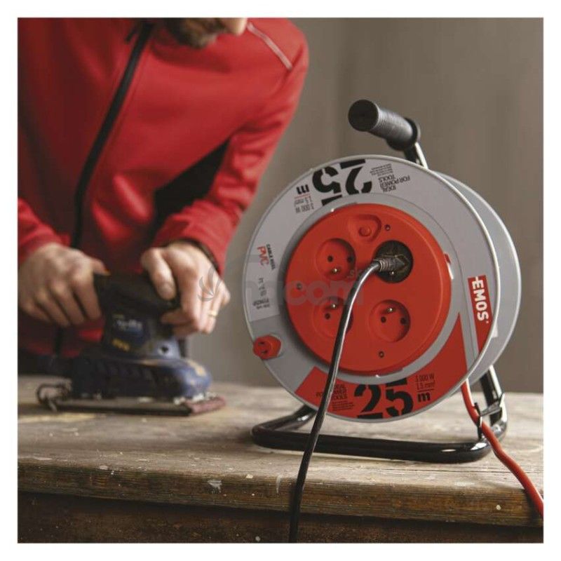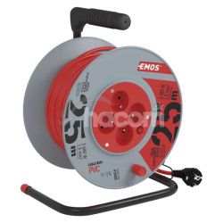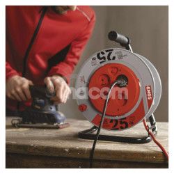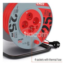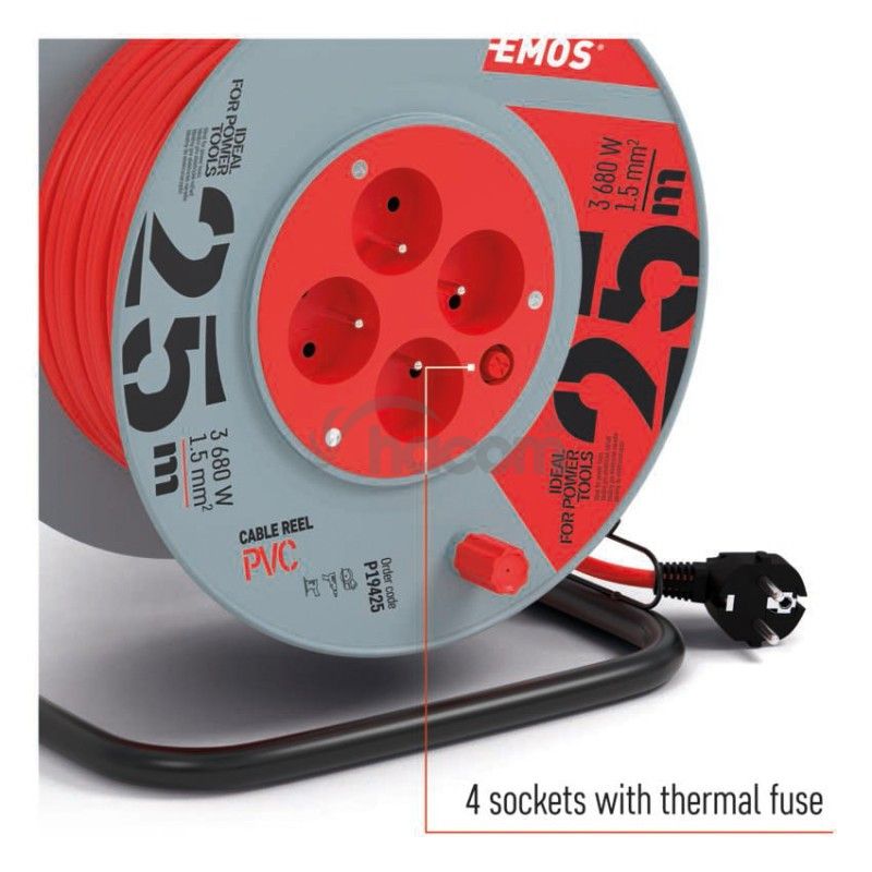 - Predlžovací kábel na bubne 25 m / 4 zásuvky / červený / PVC / 230 V / 1,5 mm2 P19425