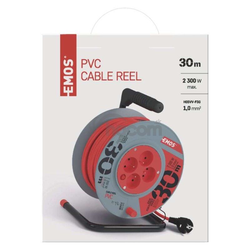 - Predlžovací kábel na bubne 30 m / 4 zásuvky / červený / PVC / 230 V / 1 mm2 P19430
