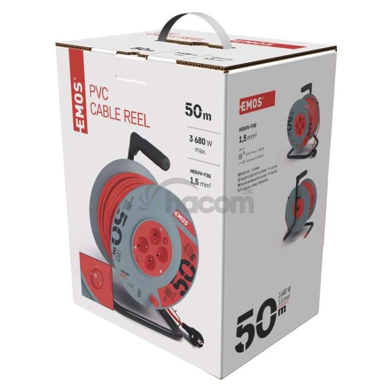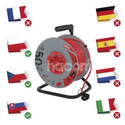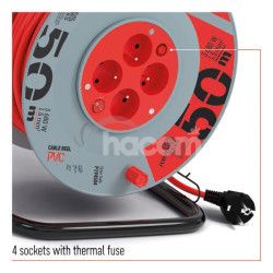 - Predlžovací kábel na bubne 50 m / 4 zásuvky / s vypínačom / červený / PVC / 230V / 1,5 mm2 P194504