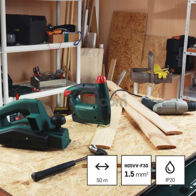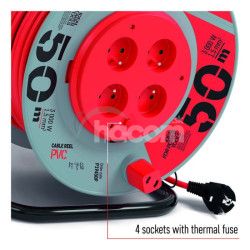 - Predlžovací kábel na bubne 50 m / pevný stred / 4 zásuvky / červený / PVC / 230 V / 1,5mm2 P19450P