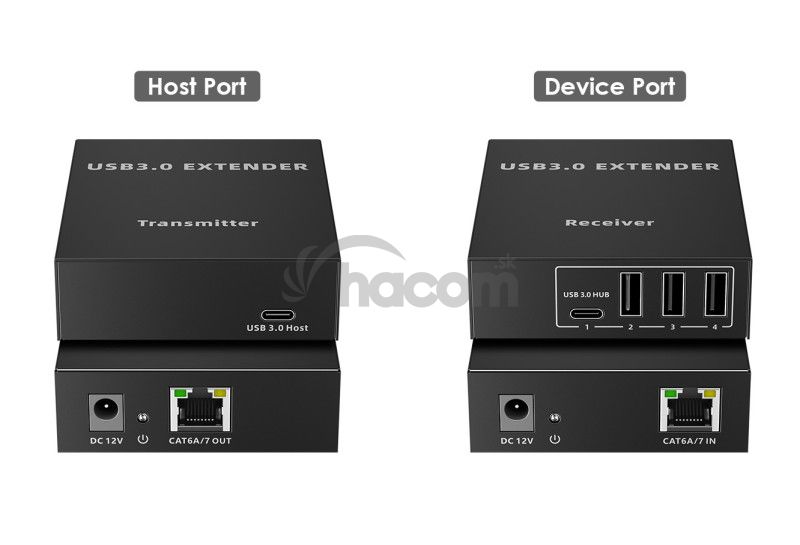 - Výstupy na prijímači: 3x USB typ A female (USB 3.0, 5Gbps) + 1x USB-C female (USB 3.0, 5Gbps)