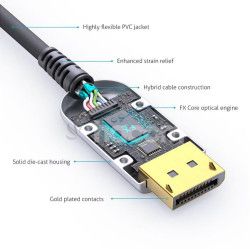 Optický DisplayPort kábel slúži na spojenie dvoch audio/video zariadení cez moderné DisplayPort rozhranie, ako je napr. HD-DVD/BluRay prehrávač a LCD/Plazma televízor. kábel prenáša digitálny zvuk aj obraz.