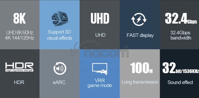- 8K (7680x4320) pri 60Hz a 24 bitová farebná hĺbka