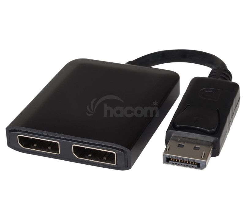 PremiumCord adaptér DisplayPort - 2x DisplayPort, rozšírenie + zrkadlenie obrazu, 4K * 2K @ 30HzTento adaptér umožňuje prepojiť DisplayPort výstup s dvoma DisplayPort monitory a na každom zobrazovať iný obraz.Například sa dá využiť na vytvorenie rozšírenej plochy na dvoch monitoroch pozri fotografie v prílohe ako príklad použitia.