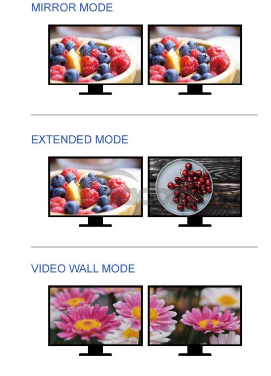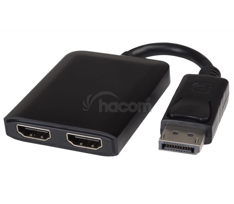 PremiumCord adaptér DisplayPort - 2x HDMI, rozšírenie + zrkadlenie obrazu, 4K * 2K @ 30HzTento adaptér umožňuje prepojiť DisplayPort výstup s dvoma HDMI monitory a na každom zobrazovať iný obraz.Například sa dá využiť na vytvorenie rozšírenej plochy na dvoch monitoroch pozri fotografie v prílohe ako príklad použitia.
