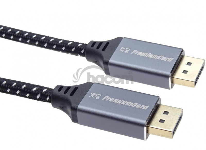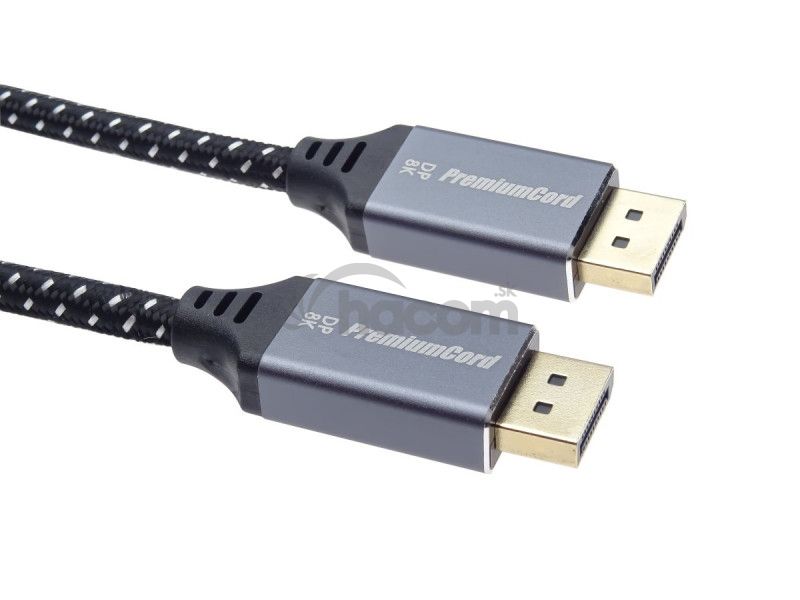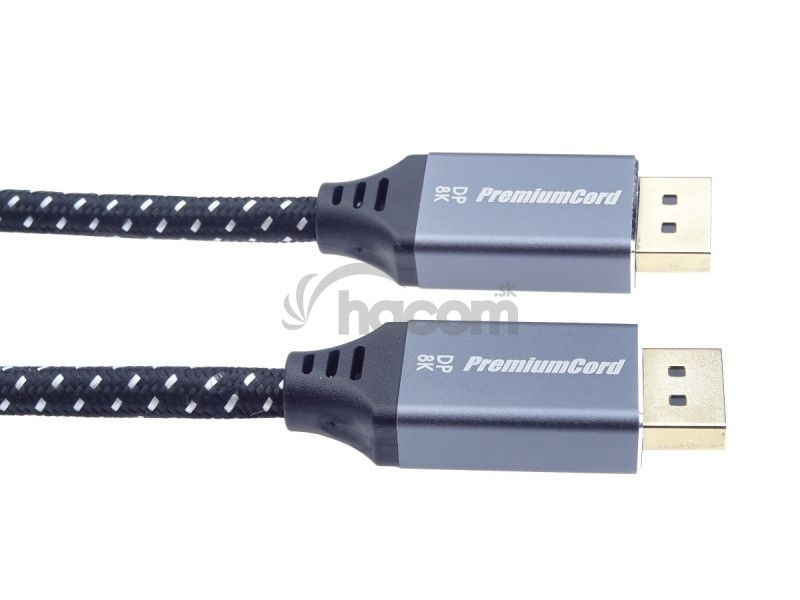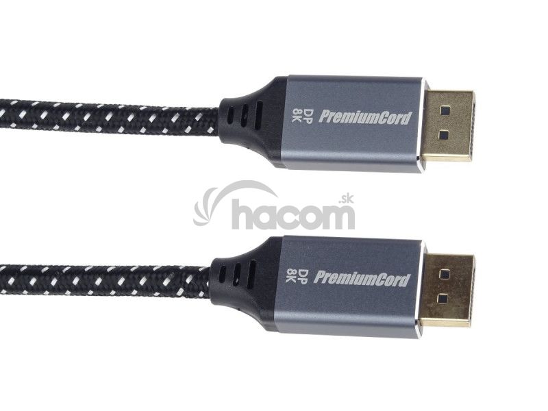 PremiumCord DisplayPort 1.4 prípojný kábel M/M pre rozlíšenie 8K, kovové krytky a pozlátené konektory, 0,5mDisplayPort 1.4 zvyšuje maximálnu dátovú rýchlosť o 50% oproti rýchlostiam dátového prenosu DisplayPort 1.2