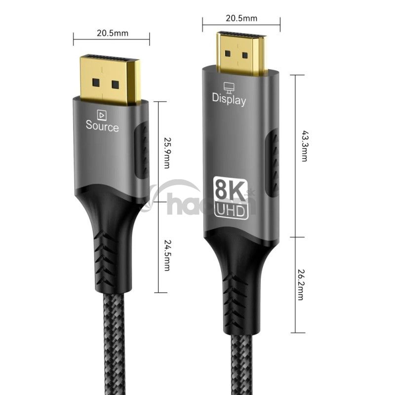 PremiumCord DP 1.4 na HDMI 2.1, 2mPremiumCord DisplayPort 1.4 na HDMI2.1 kábel pre rozlíšenie 8K @ 60Hz, 4K @ 144Hz, 2m