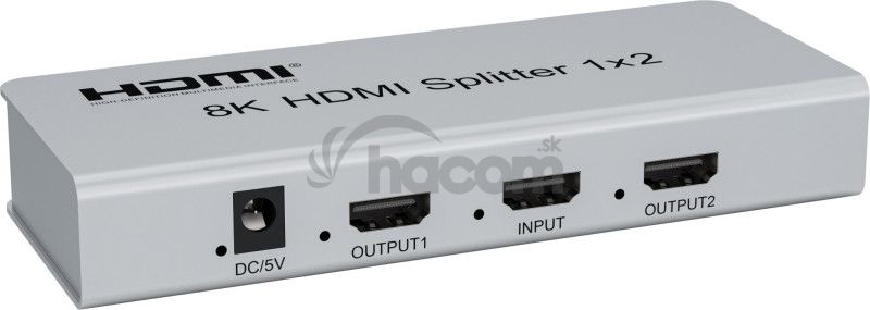 PremiumCord HDMI 2.1 splitter 1-2 porty, 8K @ 60Hz, 4K @ 120Hz, 1080p, HDRMôžete pripojiť dve HDMI obrazovky k jednému HDMI zdroju signálu ako je PC, notebook, DVD, set top box, atď.