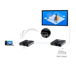 * KVM extender (keyboard, video and mouse) umožňuje preniesť spoločne signál na väčšiu vzdialenosť a vzdialene ovládať počítač alebo server.