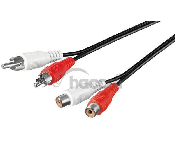 Kábel pre predĺženie spojenie dvoch audio zariadení zvukovým signálom stereo kvality. Na oboch stranách sú 2 konektory RCA (cinch).- Konektory: 2 x RCA cinch male <-> 2 x RCA cinch female
