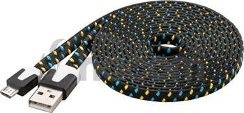 - PremiumCord Kábel micro USB 2.0, AB 2m, plochý textilný kábel, čierno-modro-žltý ku2m2ft1
