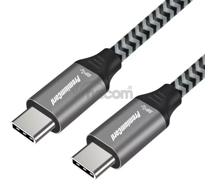 PremiumCord Kábel USB 3.2 Gen 1 USB-C male - USB-C male, hliníkové krytky konektorov, bavlnený oplet, 1m*Prvý konektor: USB 3.2 typ C samec