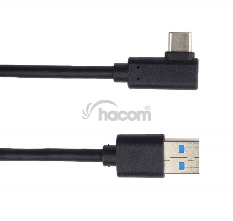 PremiumCord Kábel USB typ C / M zahnutý konektor 90 ° - USB 3.0 A / M, 1m.* Umožňuje rýchle nabíjanie a synchronizáciu, prenos dát rýchlosťou USB 3.0 Super-speed 5 Gbit / s, až 10x rýchlejší ako štandardná USB2.0