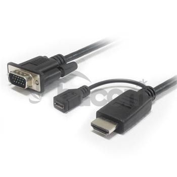 Káblový prevodník HDMI na VGA s napájacím micro USB konektorom - čierny* Adaptér je určený pre počítače alebo notebooky s výstupom HDMI, pre prevod obrazu na analógové VGA.
