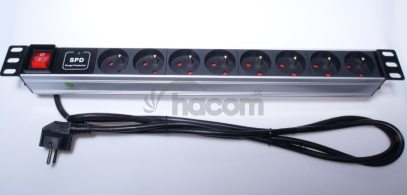 - PremiumCord Panel napájací 1U do 19" racku, 8x230V, prepäťová ochrana, 2m kábel, vypínač PDU-F10G08S/SURGE