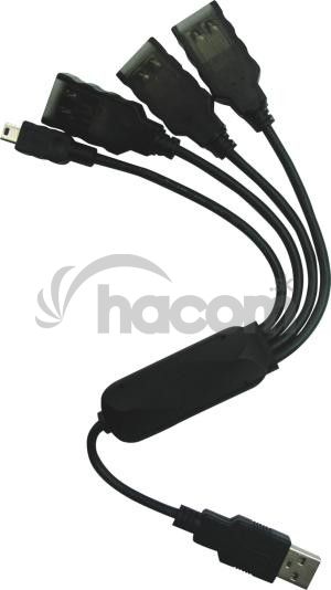 USB 2.0 HUB 4 porty, externé bez napájania- Výstupné konektory 3xUSB A / F + 1xUSB mini 5pin / M