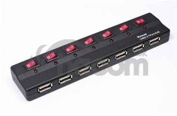 PremiumCord USB 2.0 HUB 7-portový s ext. napájaním a vypínačmi portov- USB 2.0, 1.1 kompatibilné