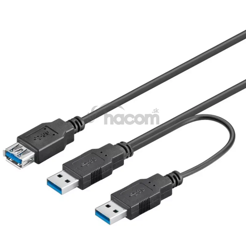 PremiumCord USB 3.0 napájací Y kábel A/M + A/M -- A/F- USB 3.0 kábel SuperSpeed