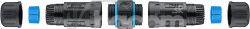 *Jednoducho rozskrutkovať, prevliecť patch káble, zasunúť do vnútornej spojky RJ45 a späť puzdro vodotesne zoskrutkovať
