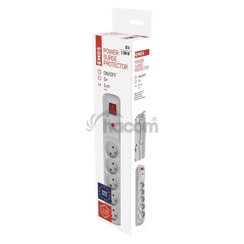 Prepäťová ochrana – 5 zásuviek, 5m, sivá P53876